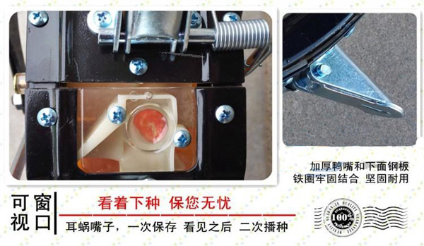 8、嘴子是耳蝸漏斗,種子不可以倒流。選出的種子不直接播到地里,保留在嘴子里面,